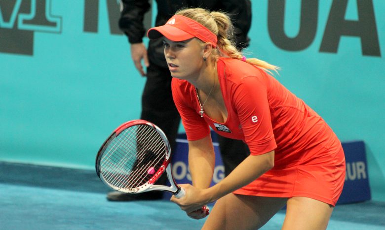 La tenista danesa Caroline Wozniacki, sexta cabeza de serie, con gesto serio durante su partido ante la alemana Mona Barthel, a la que acabó ganando por 6-4 y 7-6 (2).