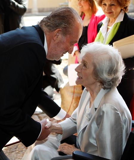 Cariñoso saludo entre don Juan Carlos y Ana María Matute