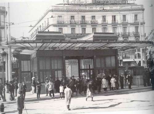 Este era el aspecto de la estación de Sol durante los años 20. La marquesina fue retirada en 1934 para despejar la plaza.
