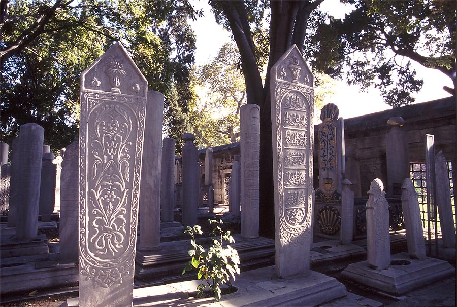 Muchas de las mezquitas de Estambul tienen a su lado pequeños cementerios, con unas lápidas muy peculiares