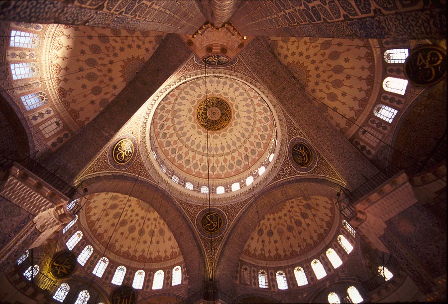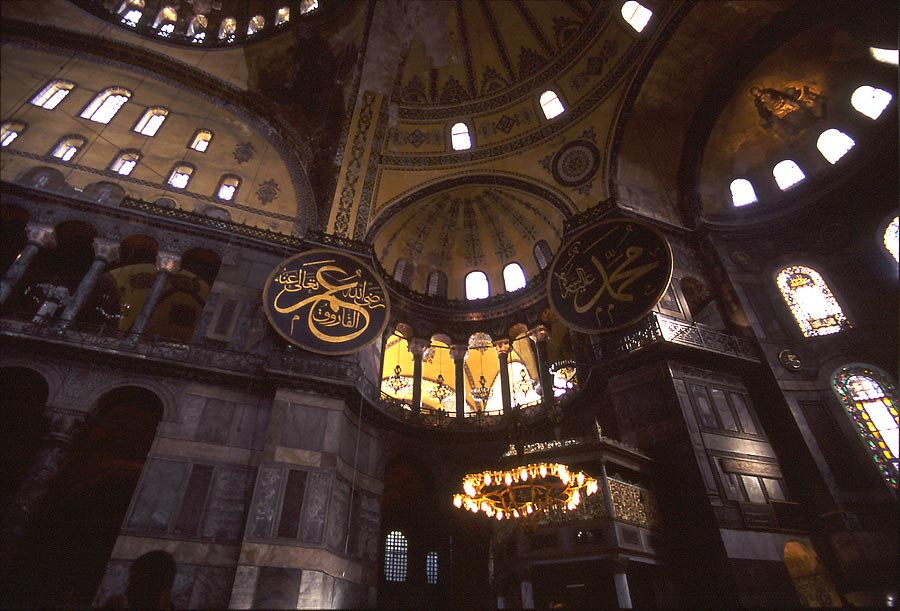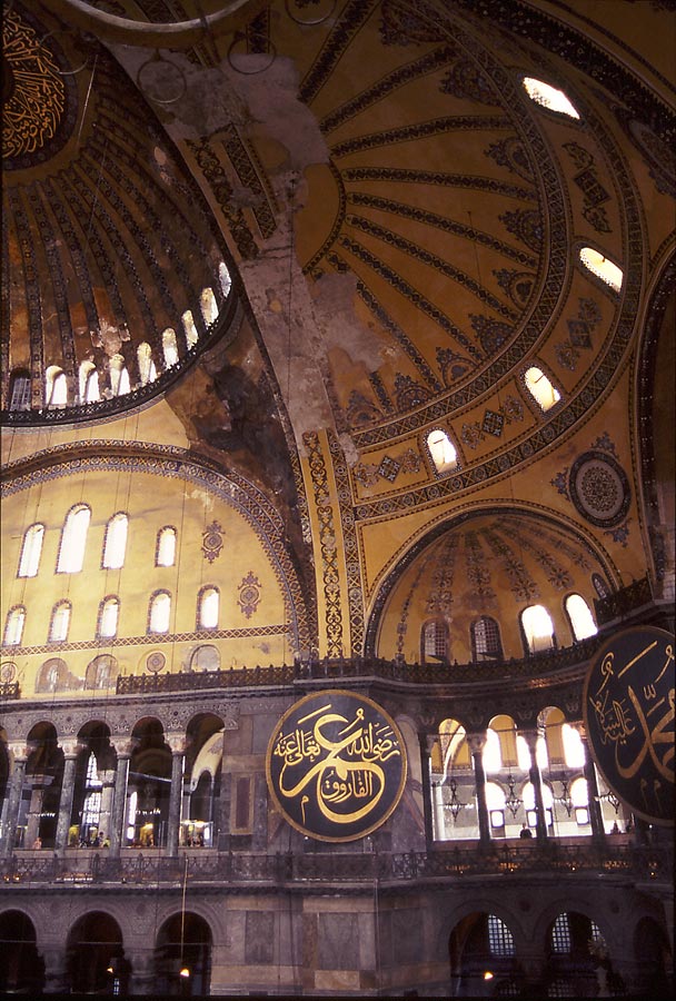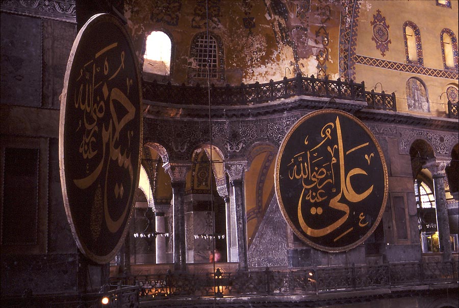 Al ser convertida en mezquita Santa Sofía fue decorada con unos inmensos medallones con frases del Corán