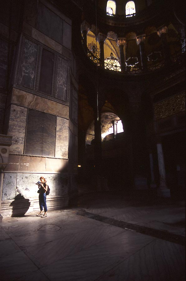 Una visitante consulta su guía en un ricón de Santa Sofía