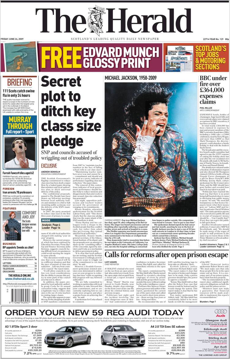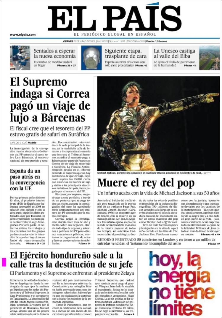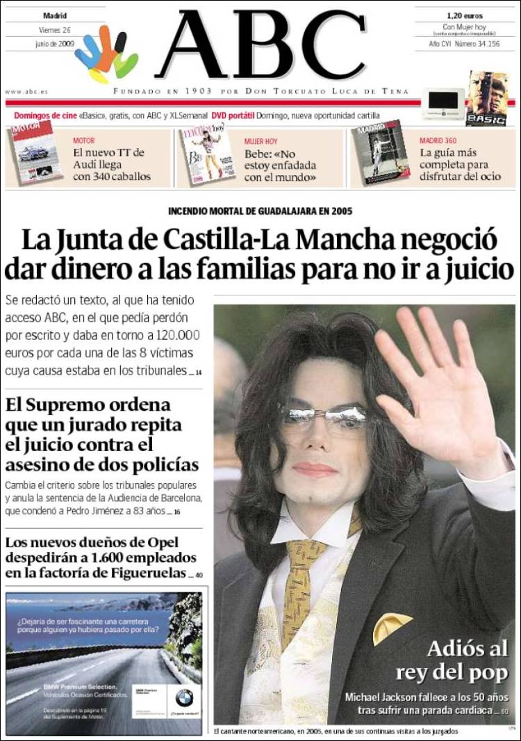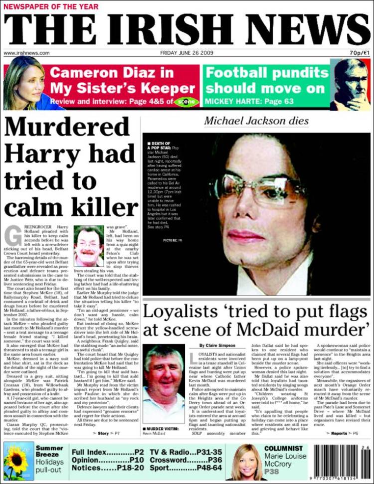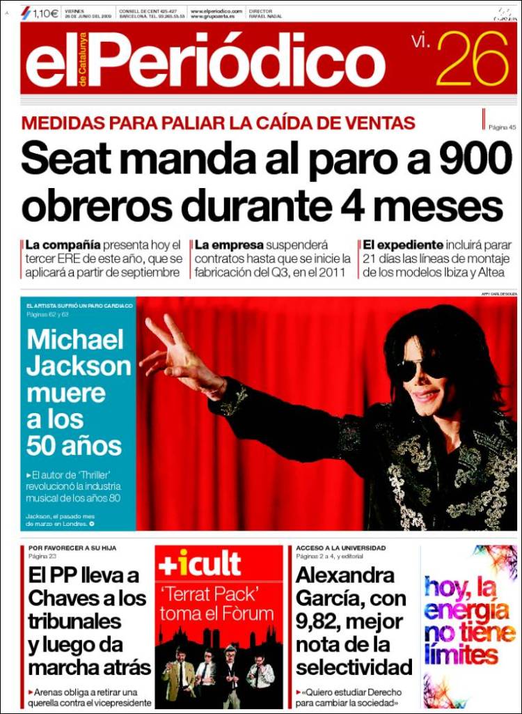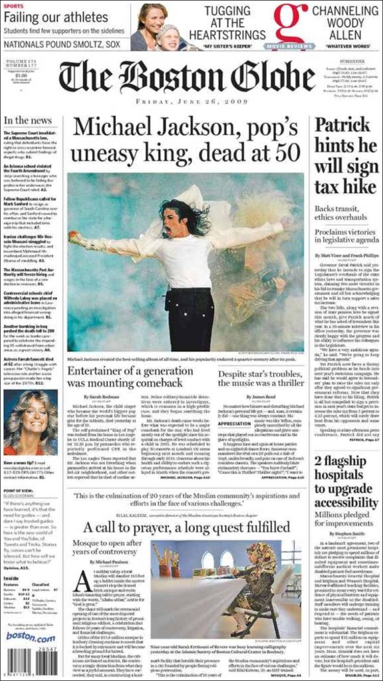 Imagen de las portadas de los principales diarios británicos que se hacen eco de la noticia de la muerte de Michael Jackson. (EFE)