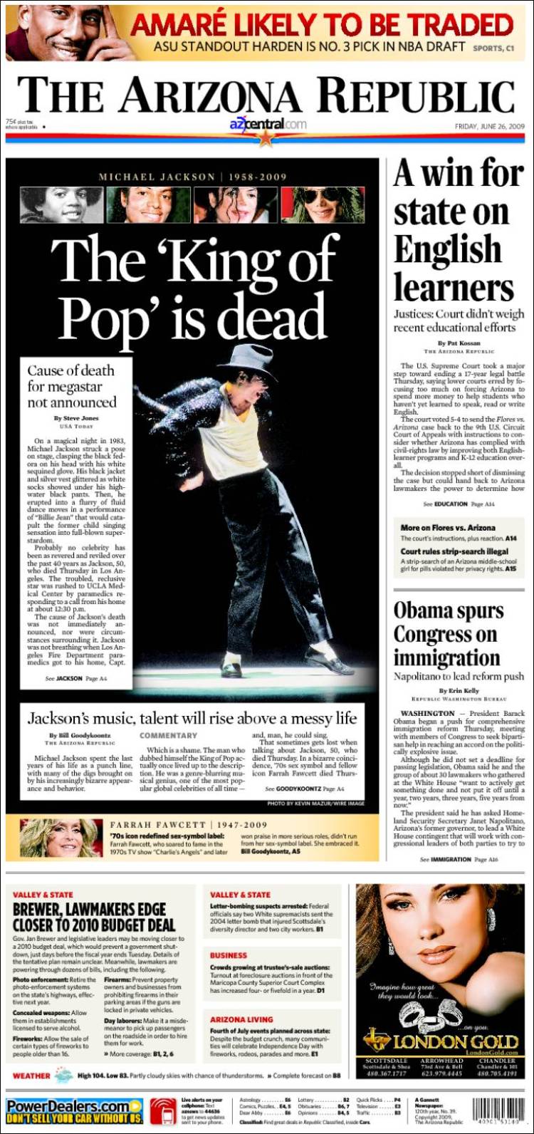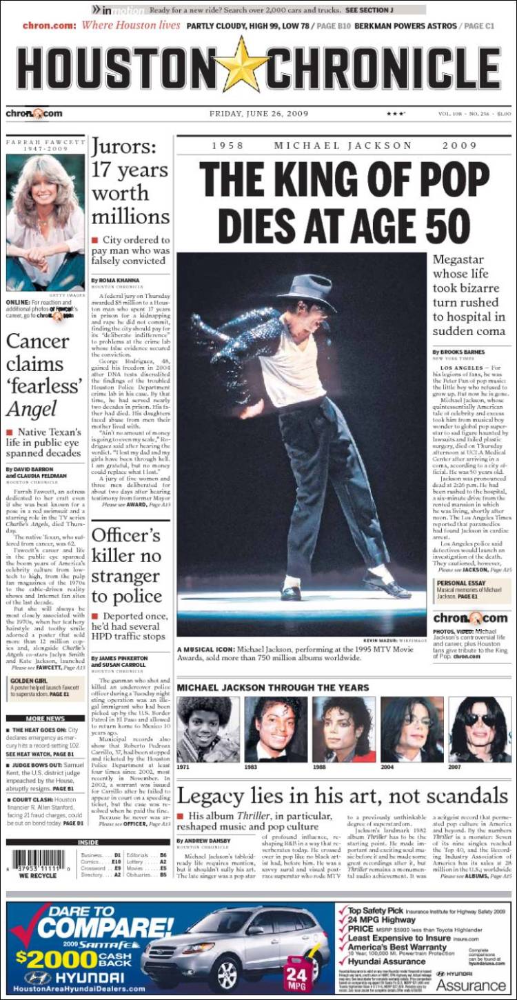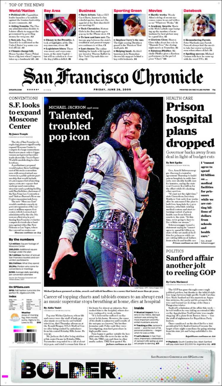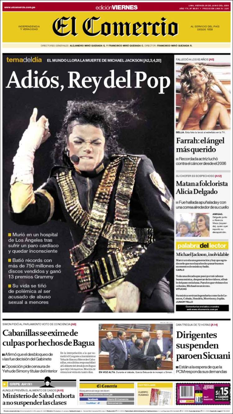 Imagen de las portadas de los principales diarios británicos que se hacen eco de la noticia de la muerte de Michael Jackson. (EFE)