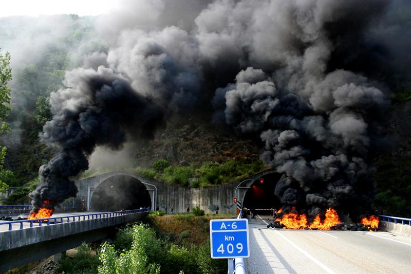 Corte de la autovía A-6 (Madrid-La Coruña) a la altura de Villafranca del Bierzo, ocasionada por la quema de neumáticos