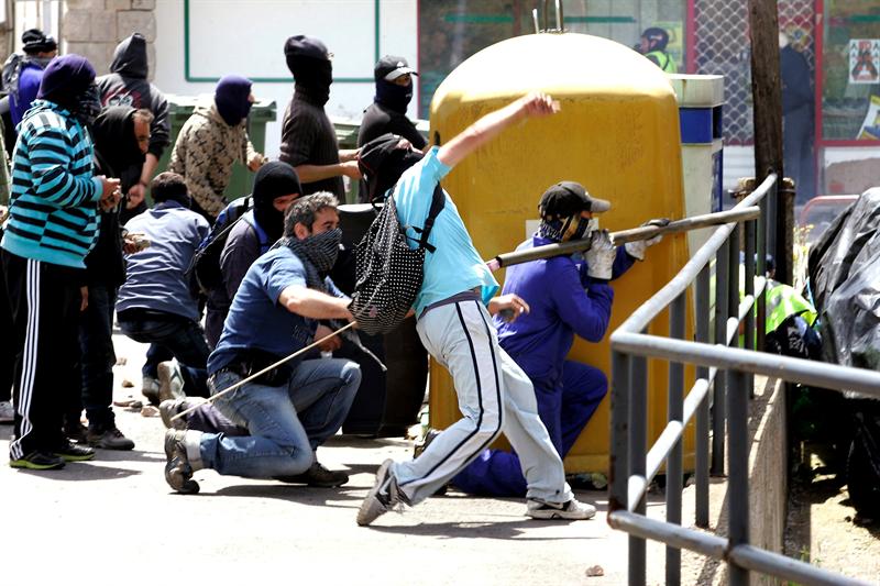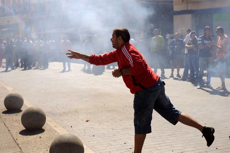 Los mineros atacan a agentes de la Policía Nacional en la localidad leonesa de Ciñera