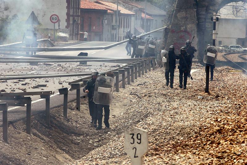 Enfrentamientos entre mineros y agentes de la Policía Nacional en Ciñera (León)