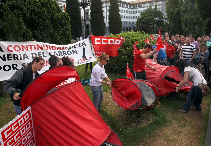 Las cuatro tiendas de campaña instaladas enfrente de la Delegación del Gobierno en Asturias hace dieciocho días, en las que han montado guardia por turnos grupos de mineros de CCOO, han sido levantadas a última hora de la tarde del jueves