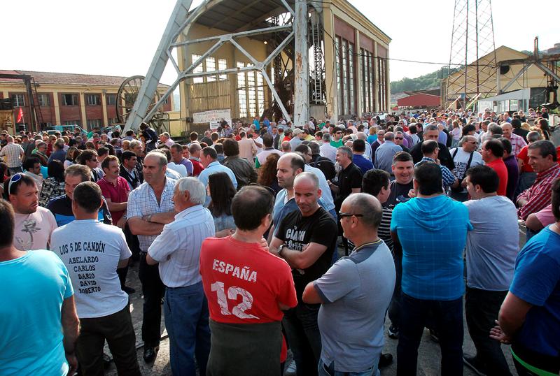 Cientos de personas se han concentrado este jueves ante la bocamina de los pozos Candín y Santiago en Langreo (Asturias), para apoyar a los mineros encerrados en el interior de estas explotaciones