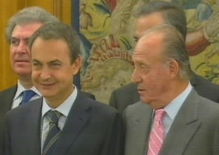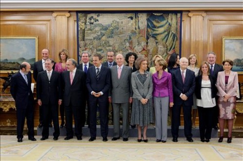 El Rey recibe en el Palacio de la Zarzuela al presidente del Gobierno, Rodríguez Zapatero, y a los nuevos ministros que prometieron sus cargos ante el Jefe del Estado. EFE