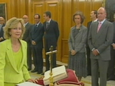 Elena Salgado será la nueva ministra de Administraciones Públicas tras prometer su cargo ante el Rey y las máximas autoridades del Estado. (Imagen TV)