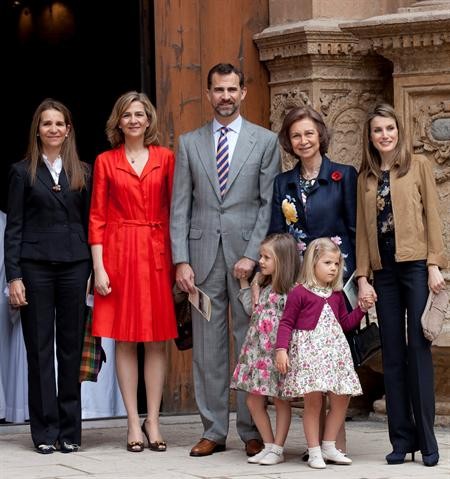 La Reina Sofía, los Príncipes de Asturias, las Infantas Elena y Cristina así como Leonor y Sofía han asistido a la Misa del Domingo de Resurrección en Palma de Mallorca. | EFE