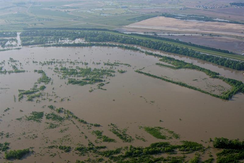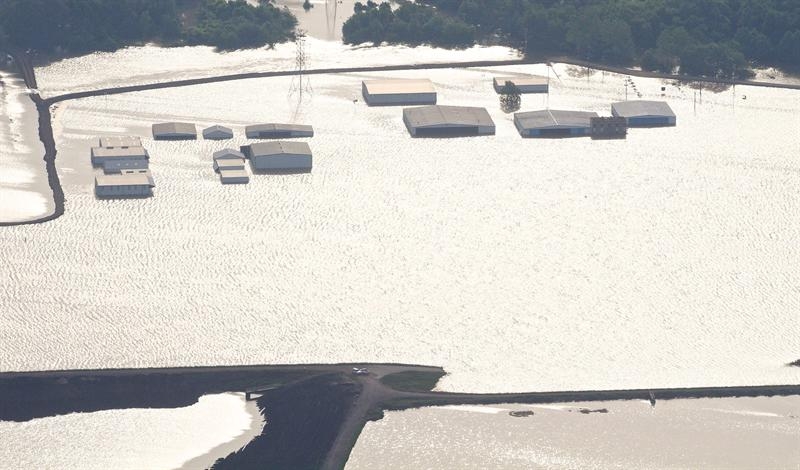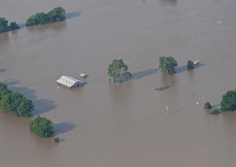 Vista general de una zona anegada por la cresta de la crecida del río Misisipí en West Memphis.