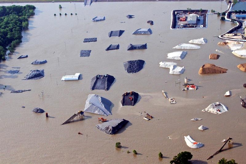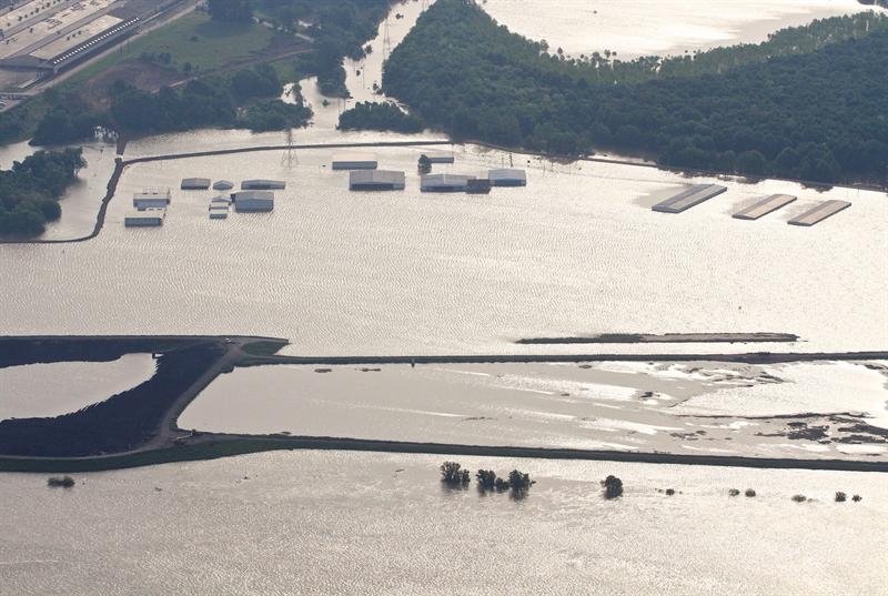Vista de una zona industrial en la ciudad de Memphis (Estados Unidos) anegada por la cresta de la crecida del río Misisipi.
