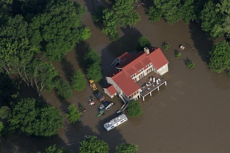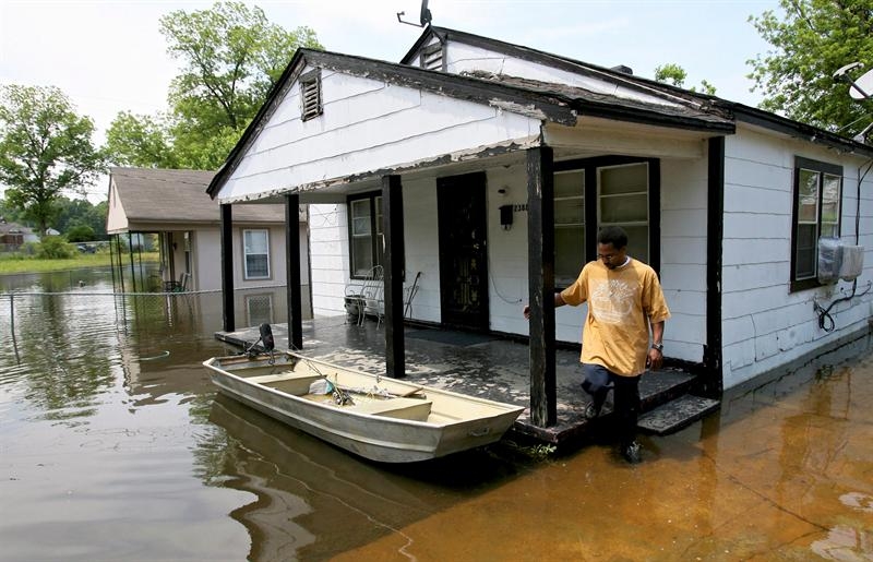 Vista de una vivienda anegada por la cresta de la crecida del río Misisipí en West Memphis.