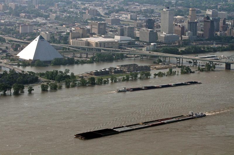 Vista general de la ciudad de Memphis (Estados Unidos) anegada por la cresta de la crecida del río.