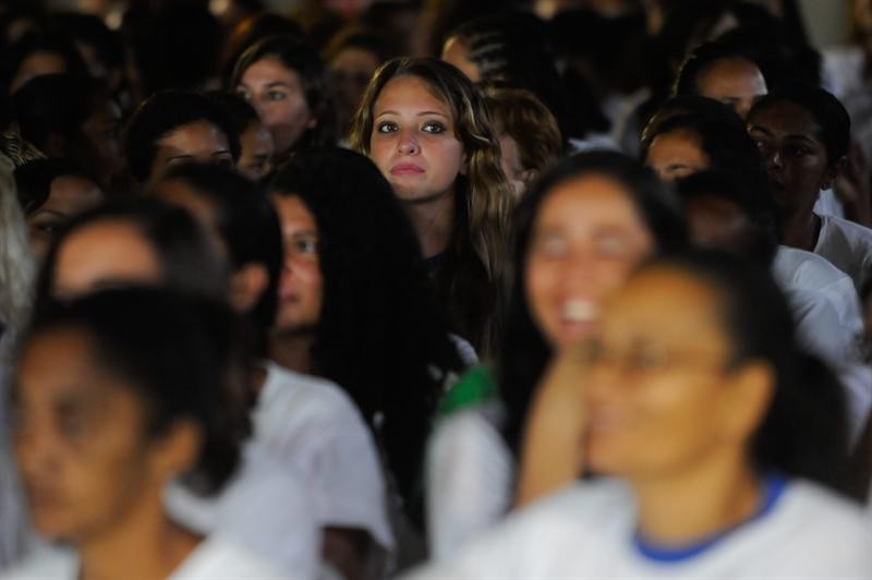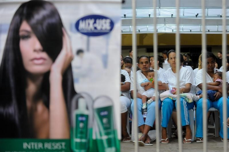 Varias reclusas de la Penitenciaria Femenina de Brasilia entre el público.