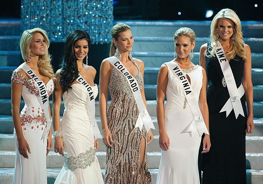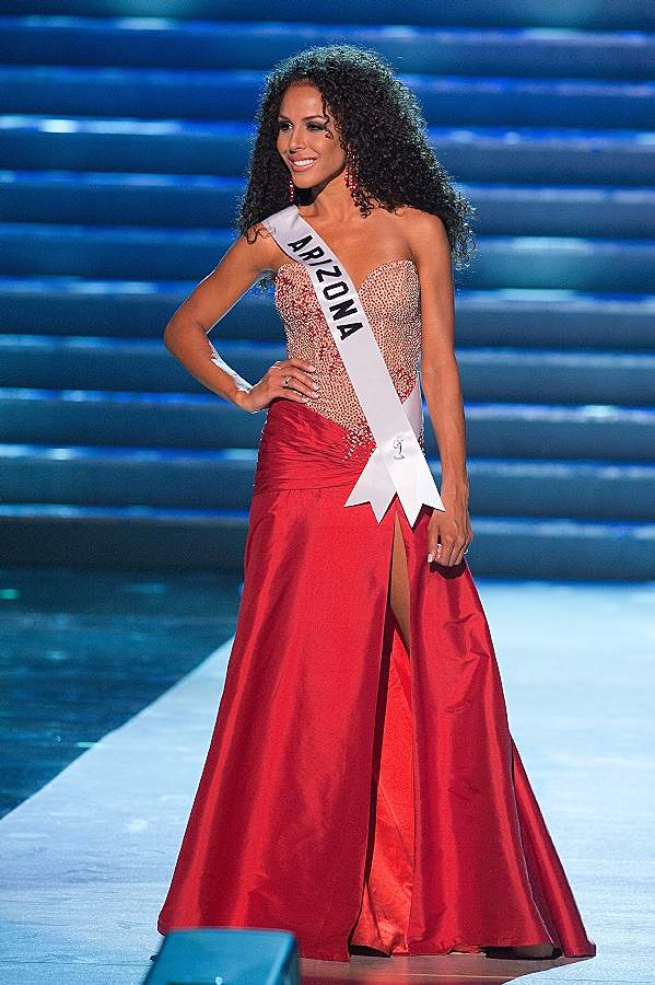 Miss Arizona en el desfile de trajes de noche la mar de bronceada, como diría Berlusconi