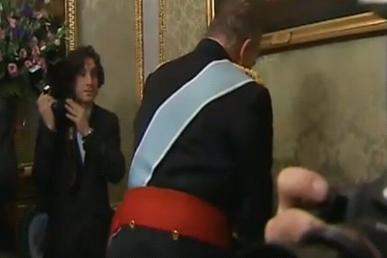 En la recepción oficial de las cartas de siete nuevos embajadores, una risa de bebé interrumpió el acto. Era el politono del movil del Rey. VER VÍDEO