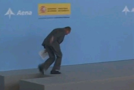 En la inauguración de la nueva terminal del Aeropuerto de Málaga, de nuevo un inoportuno escalón se interpuso en el camino del Rey. VER VÍDEO