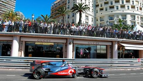 El piloto británico de Fórmula Uno Jenson Button, de McLaren Mercedes, conduce su monoplaza durante la primera sesión de entrenamientos libres del Gran Premio de Mónaco.