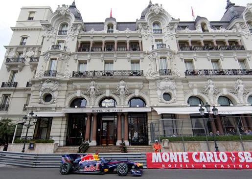 El piloto alemán de Fórmula Uno Sebastian Vettel, de Red Bull Racing, conduce su monoplaza durante la segunda sesión de entrenamientos libres del Gran Premio de Mónaco.