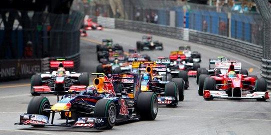 El piloto australiano de Fórmula Uno Mark Webber, de Red Bull, lidera la carrera tras salir primero en el Gran Premio de Mónaco.