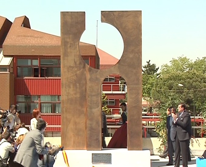 El monumento a las víctimas del terrorismo ha sido instalado Escuela Politécnica Superior del Campus de Montepríncipe de la Universidad San Pablo CEU y lleva por título "La puerta del recuerdo".