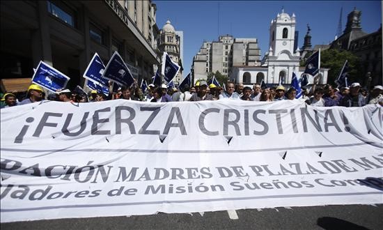 La asociación de extrema de izquierda de Bonafini, que se apropió del nombre de las madres de la plaza de mayo, se manifiesta junto a montoneros en apoyo a la viuda Kirchner. EFE