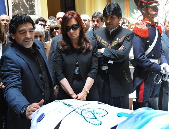 La foto lo dice todo. A un lado, Maradona y al otro, Evo Morales.