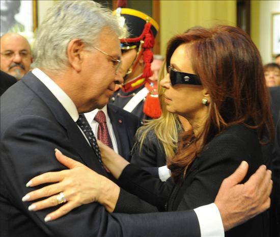 El ex presidente del Gobierno de España, Felipe González, saluda a la presidenta de Argentina, Cristina Fernández de Kirchner.