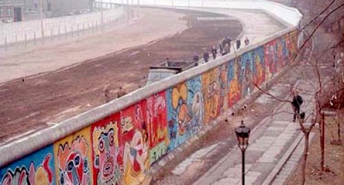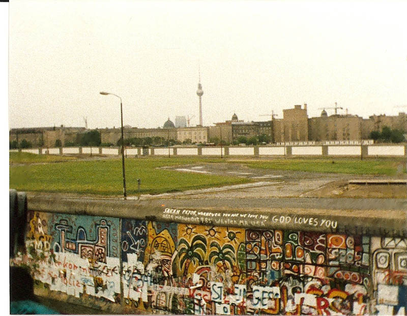 El muro en Kreuzberg en 1986. Se ve perfectamente la Franja de la Muerte patrullada por militares germanorientales que partía Berlín en dos.