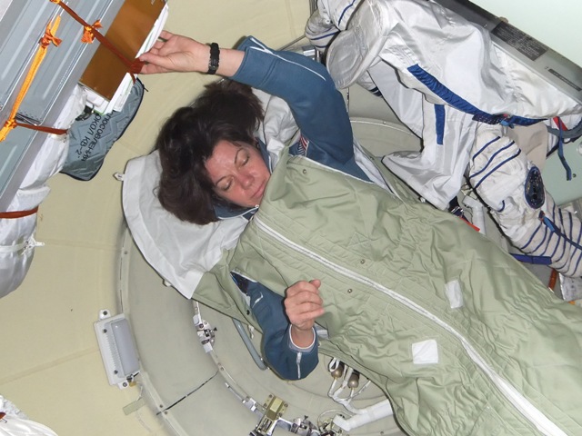 Desde hace años los astronautas norteamericanos utilizan las Soyuz para acceder a la EEI. En la imagen la astronauta Catherine Coleman duerme en el módulo orbital tras un lanzamiento.