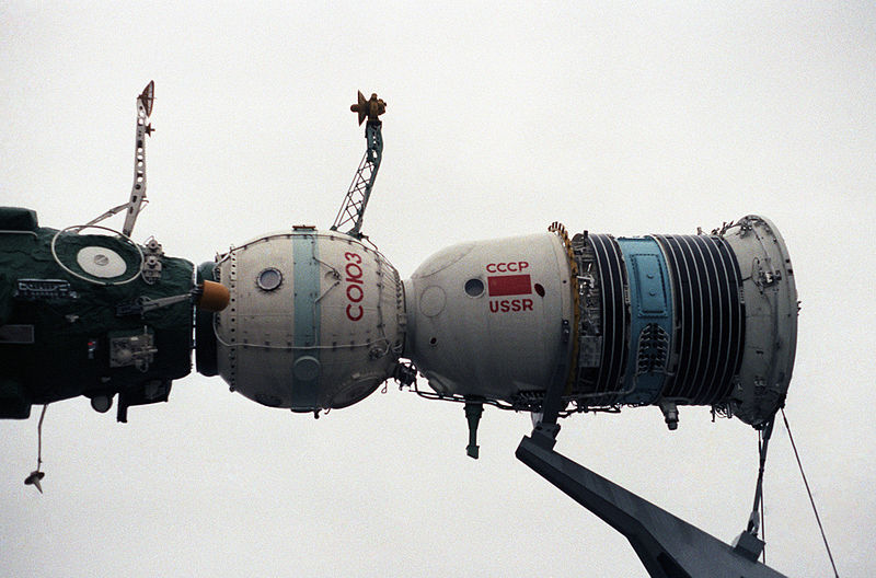 La experiencia de los rusos en estaciones espaciales es muy amplia, llevan desde los años 70 construyendo una tras otra en el espacio. En la imagen una Soyuz acoplada a la estación espacial Salyut 7 en 1985.