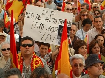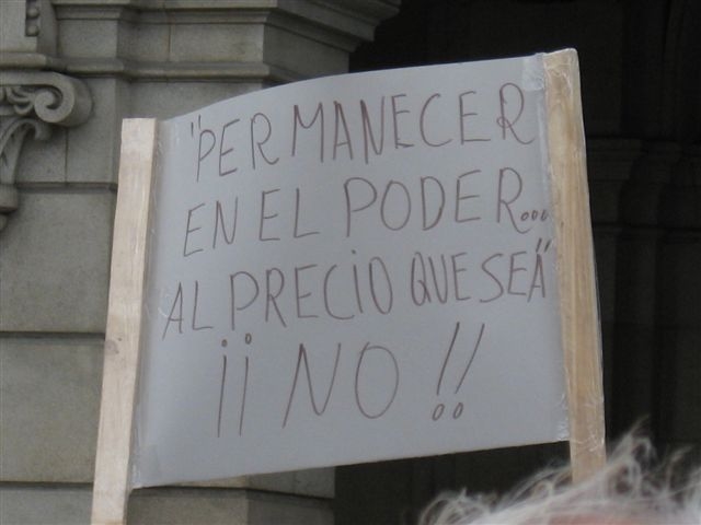 Otro detalle de los asistentes a la concentración de Madrid que recordaban con carteles a Zapatero "Rendición en mi nombre No". (LDTV)