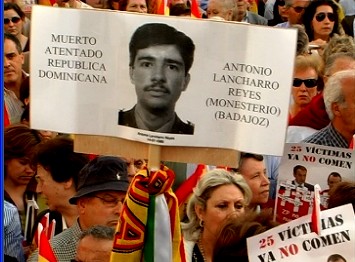 En la imagen, una víctima del terrorismo recordaba a su familiar muerto en el atentado de República Dominicana a manos del sanguinario De Juana. (LDTV)