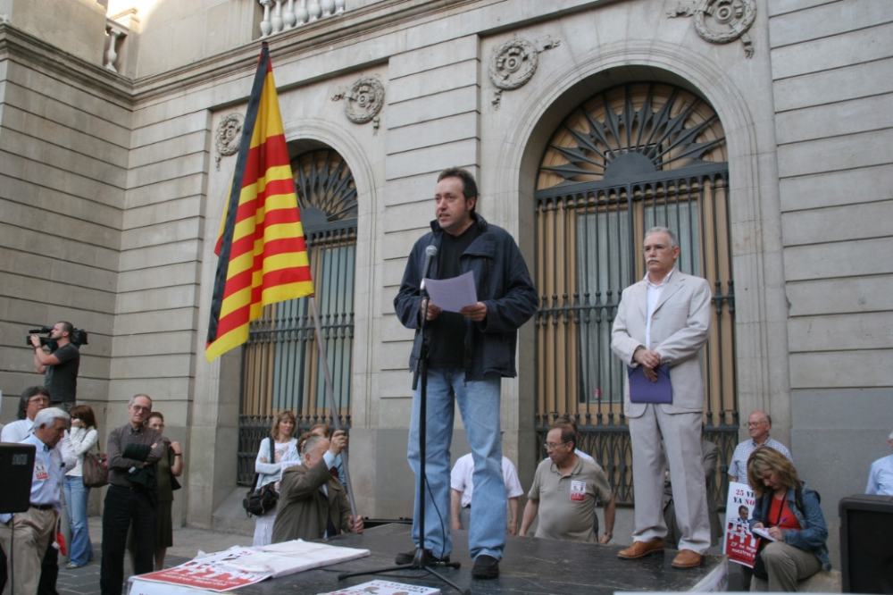 Cartel alusivo a las víctimas de Ignacio de Juana, en la concentración de la Plaza de San Jaime, en Barcelona. (Bripac 342)