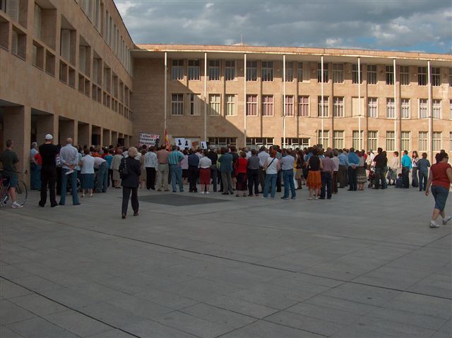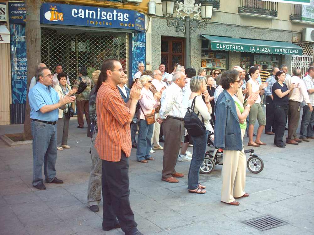 En Granada, la solidaridad con las víctimas de Ignacio de Juana desafió al fuerte calor que caía sobre la ciudad a las siete de la tarde. (Peones Negros de Granada)