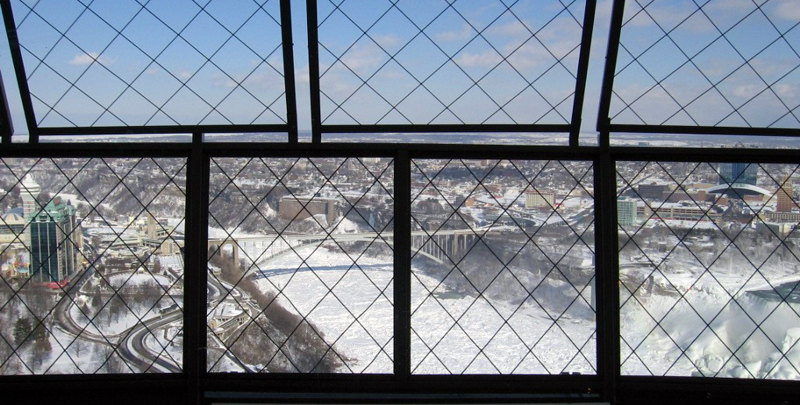 Desde la torre de observación Skylon, situada en el lado canadiense, puede apreciarse la magnitud de la helada.