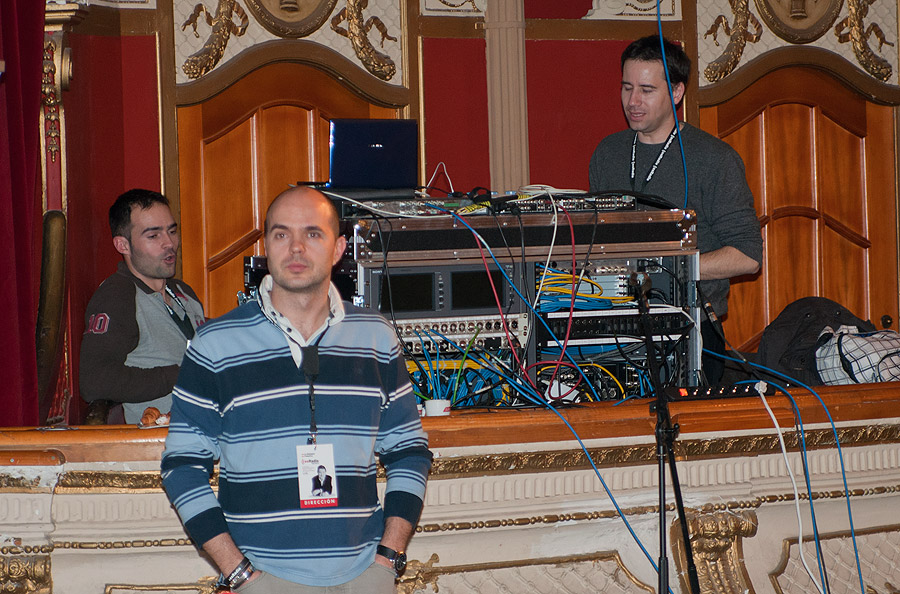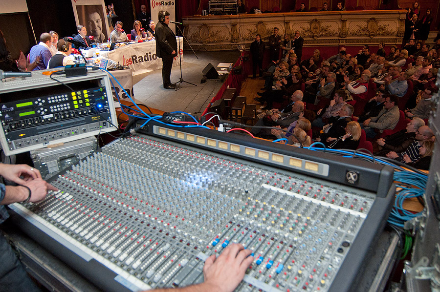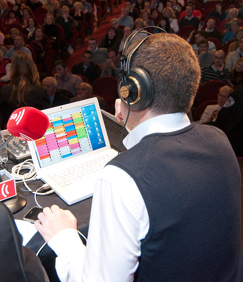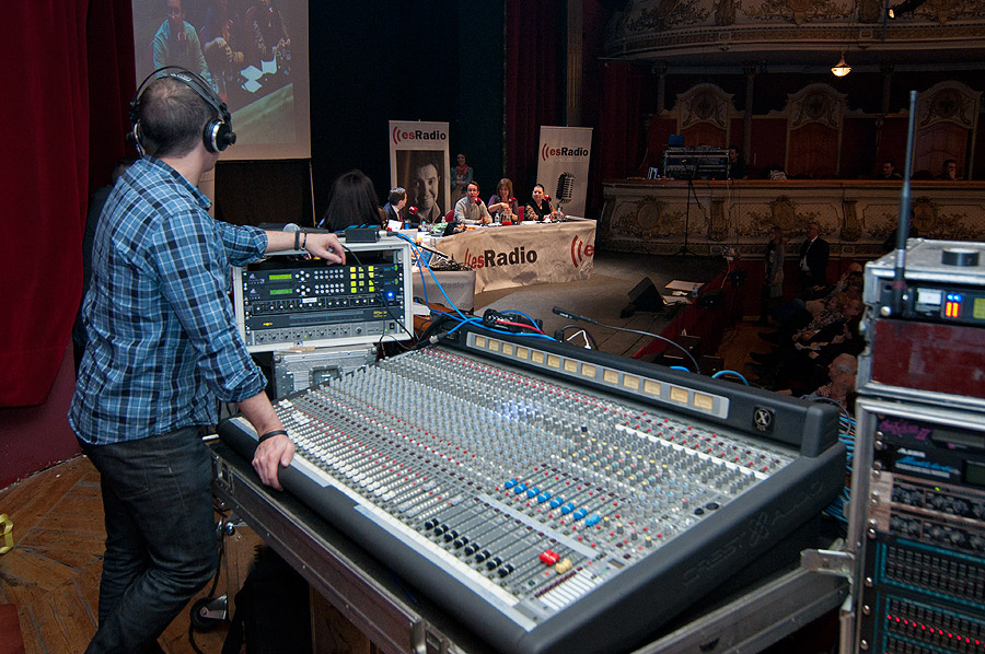 Controlando la mesa de sonido durante la actuación de Fernando Echevarría