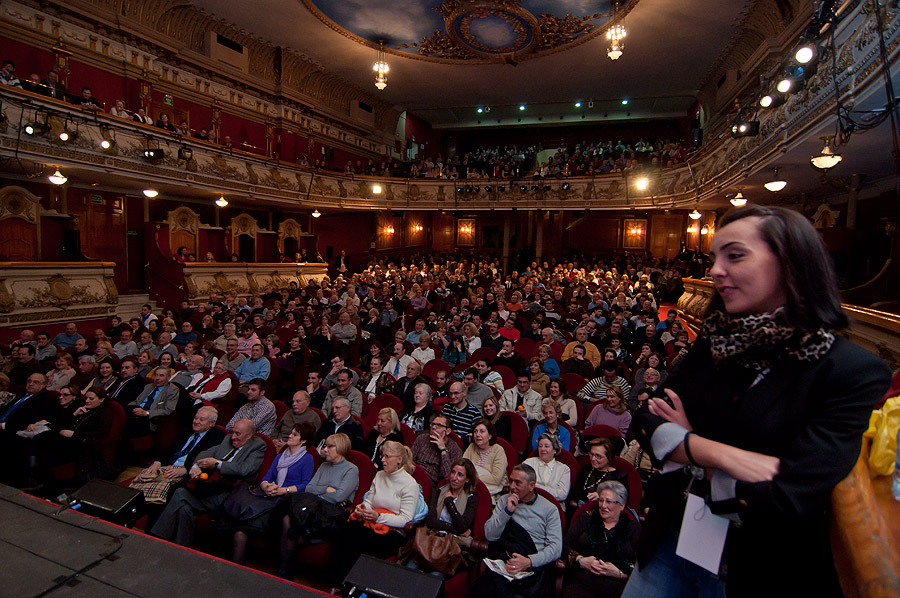 Sara observa el desarrollo del programa desde detrás del escenario