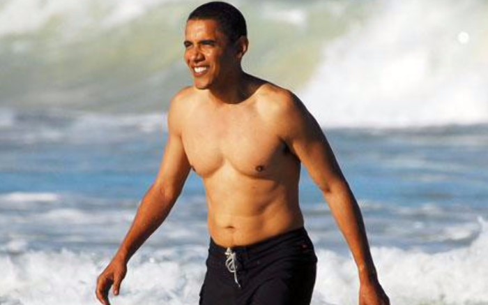 El presidente luce figura después de salir de la playa. Hace poco sacó a la luz su partida de nacimiento en la que aparecía Hawaii como el Estado en el que nació. Como es lógico para alguien que vive en una isla, la natación es uno de sus fuertes.