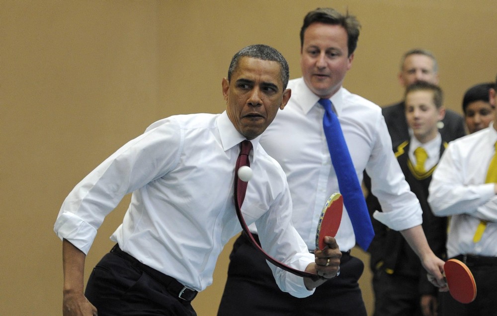 Este martes se le ha visto jugar al ping-pong con el primer ministro británico, David Cameron, en la visita oficial de Obama al Reino Unido.