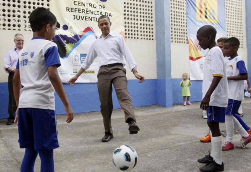 Aunque no es un deporte demasiado popular en EEUU, cuando viajó a Brasil se animó con el fútbol o soccer.