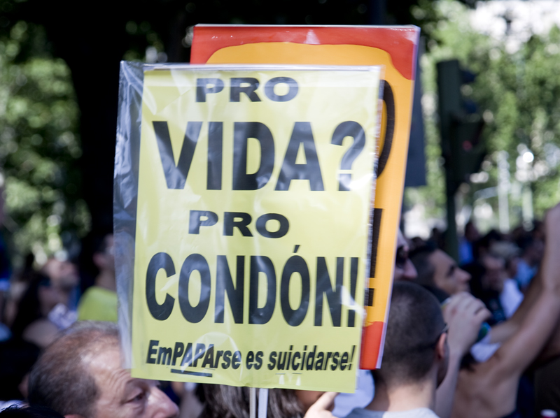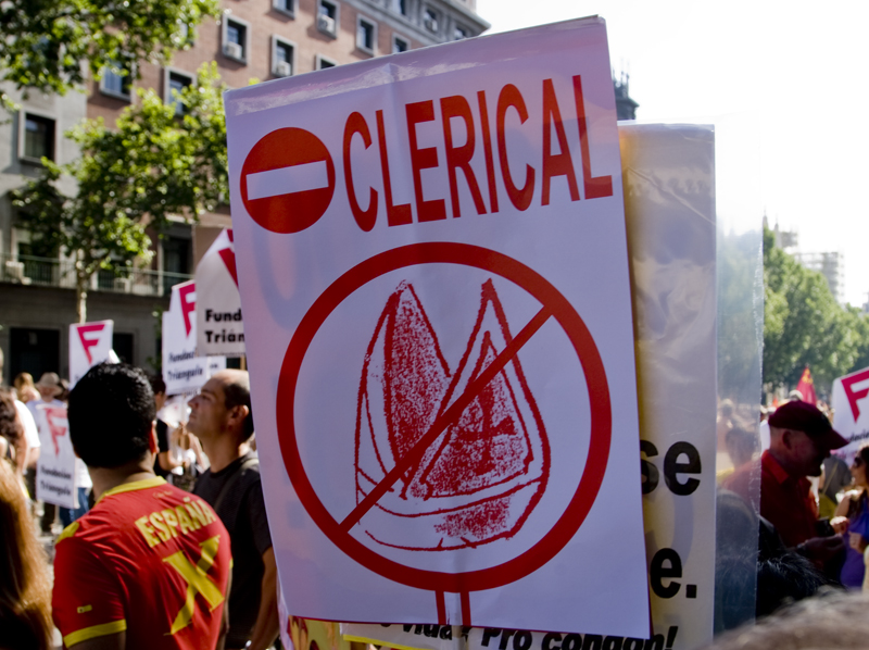 Una de las clásicas pancartas anticlericales. Este año ha habido menos que en otras ediciones.