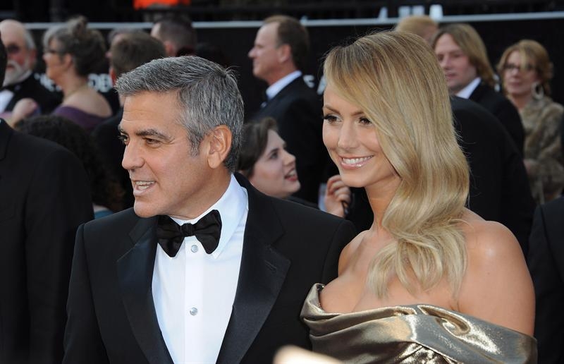 El actor estadounidense George Clooney y su novia, la actriz y exluchadora profesional Stacy Keibler a su llegada a la alfombra roja
