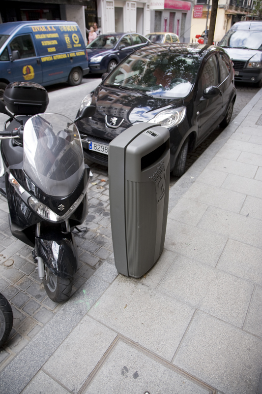 Se trata de papeleras electrónicas o “inteligentes” tal y como las llaman en el ayuntamiento. Su “inteligencia” se limita a un circuito integrado montado dentro de la papelera que avisa a los servicios municipales de posibles incidencias de la papelera en cuestión como, por ejemplo, que un vándalo la haya emprendido a patadas con ella.