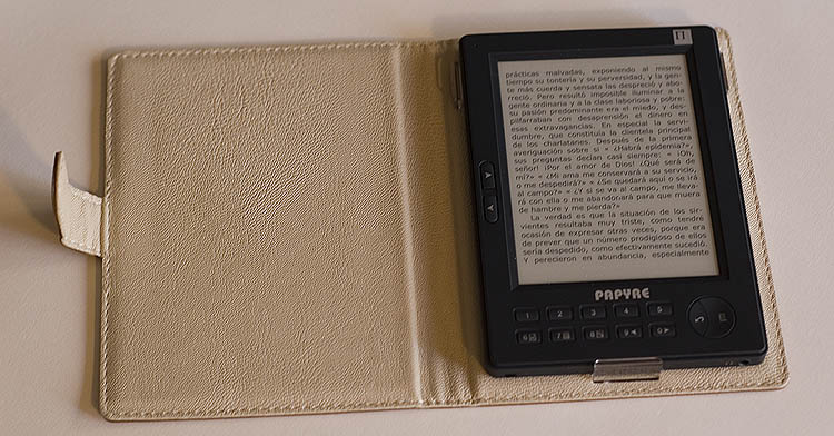 Fuera de su funda, el Papyre 5.1 es sensiblemente más pequeño que la caja de un DVD.