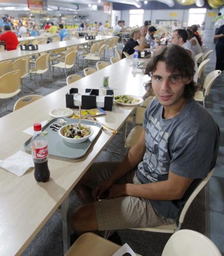 El tenista español Rafael Nadal almuerza en el comedor de los atletas de la Villa Olímpica. (EFE)