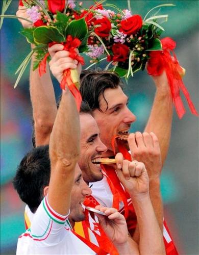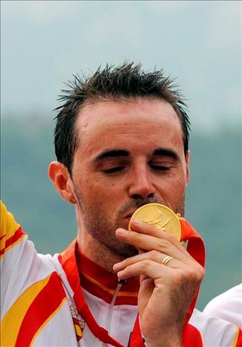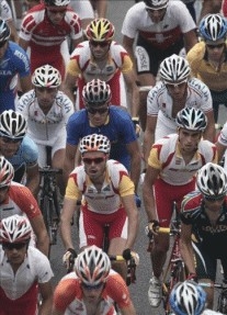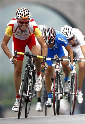 Samuel Sánchez en medio del pelotón, se preparaba para iniciar la escapada decisiva que le conduciría hasta la gloria olímpica en Pekín. (EFE)